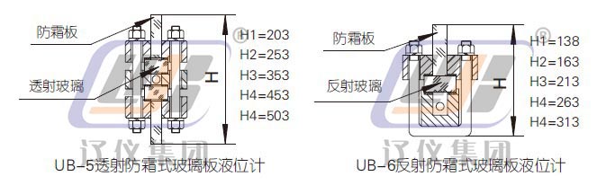 UB-5,UB-6防霜式系列玻璃板液位計是專為解決測量低溫介質的液位而設計的。它可透過防霜翅片清晰地觀察到被測介質液位或界位。