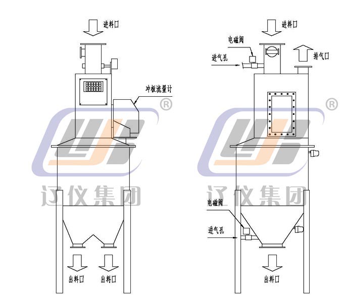 4、本系統為防止物料長時間沉積造成堵塞,在上、下出料口設有氣體松動裝置,定期松動。