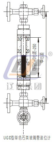 U G D 系列單色石英玻璃管液位計是由表體、石英管、上、下閥及排污閥等組成。上下閥為偏心直角針形閥,便于清洗。液位計法蘭與容器上的法蘭連接構成連通器,利用連通器原理和自然光在液體中折、反射的原理, 在氣相, 自然光直接透過石英管從可視窗射出, 在液相, 自然光直接透過石英管照射到不透明的介質上被吸收而呈現出介質的本色, 這樣氣、液的分界面就清晰可辨了。